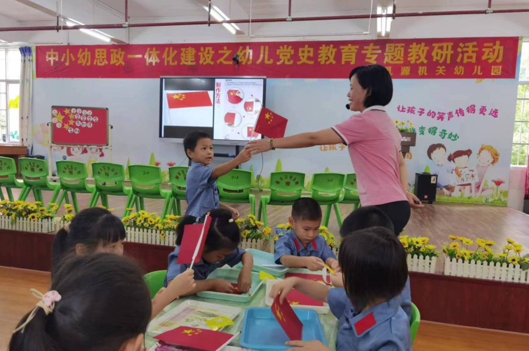 “思政教育,要从娃娃抓起!”“用儿童能懂的方式上好思政课,在幼儿心里种下了爱国的种子。”这是大家形成的共识。多年来,我县一直坚持德育为首,积极创新,按照学生的成长规律和认知能力,采用情境式、体验式、互动式、活动式、探究式等方法,狠抓中小学生思想政治教育。同时广泛开展思政主题活动,让学生学有所得、学有所思、学有所成,在思政课中汲取丰富的知识与思想,用实际行动汇聚起为党育人、为国育才的磅礴力量。