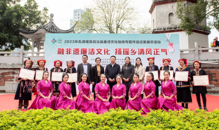 近日,由县纪律检查委员会、县文广旅体局联合主办的2023年乳源瑶族自治县瑶绣廉洁文化作品征集展示活动在县文昌公园广场举行。县纪律检查委员会、县文广旅体局、县委巡察办相关负责人出席活动,各镇、县直各单位干部职工代表、市民群众等400多人参加了本次活动。 县纪委相关负责人在活动致辞中表示,此次活动主题“融非遗廉洁文化 扬瑶乡清风正气”立意深刻,以思廉、促廉、颂廉、扬廉为出发点和落脚点,把廉洁文化与瑶绣元素相结合,是推进廉政文化建设的一次创新和尝试,也是坚定文化自信的一次实践。加强党风廉政建设是加强党的执政能力建设、巩固党的执政地位的重要保证,是新形势下党的一项重大政治任务。我们要持续强化政治引领、加强作风建设、从严执纪问责,坚持问题导向,坚持严管厚爱,坚持一体推进“不敢腐、不能腐、不想腐”,不断营造风清气正的政治生态和崇廉向上的社会氛围。