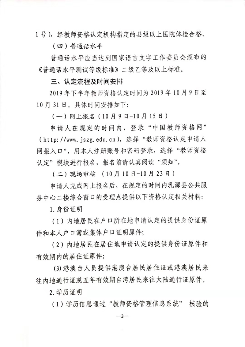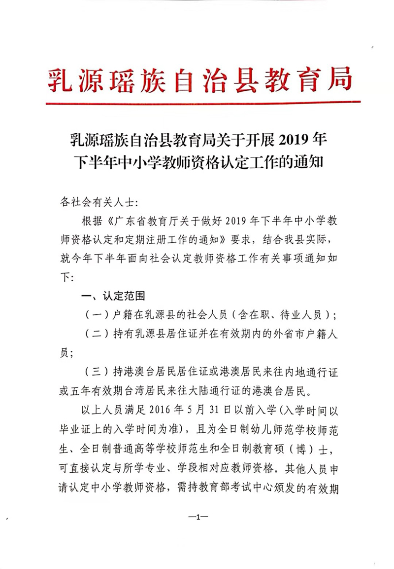 乳源瑶族自治县教育局关于开展2019年下半年中小学教师资格认定工作的通知
