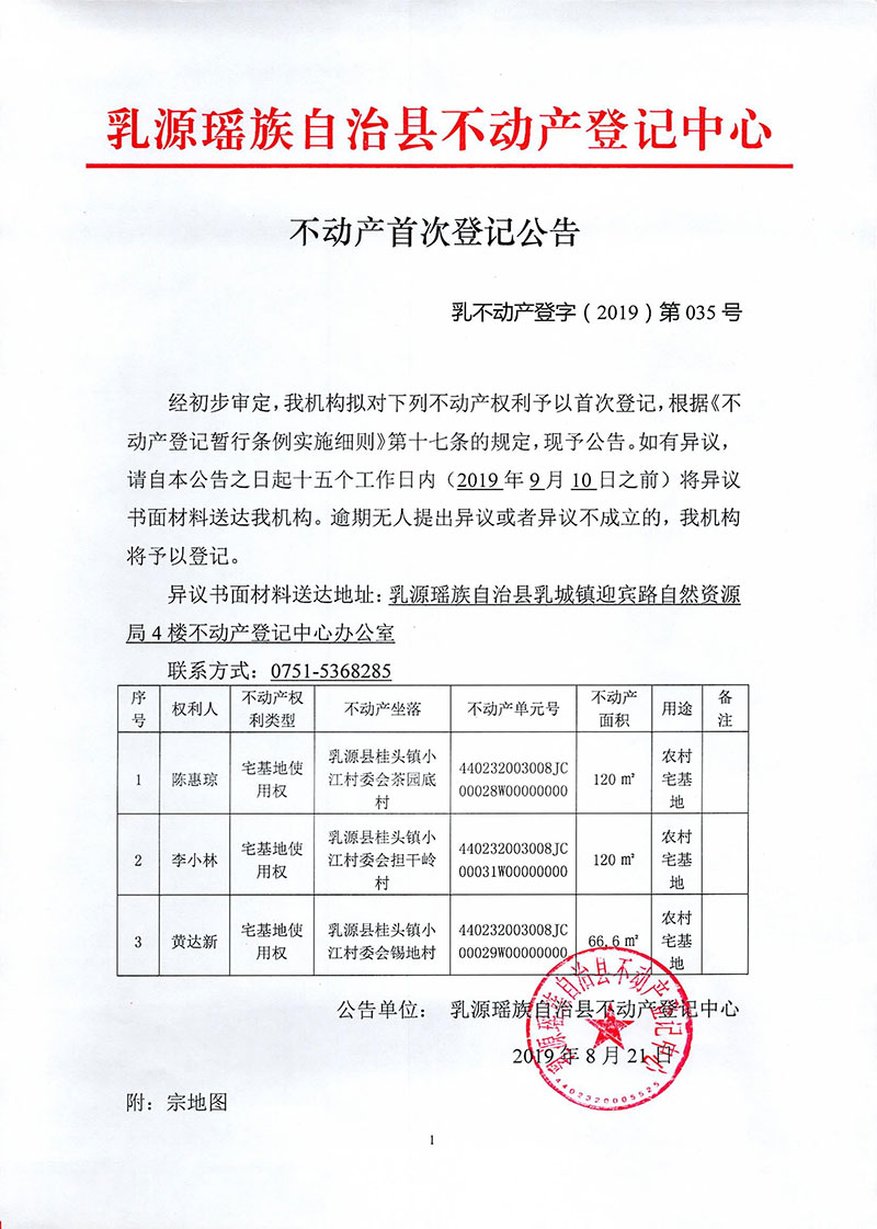 不动产首次登记公告(2019第035号)