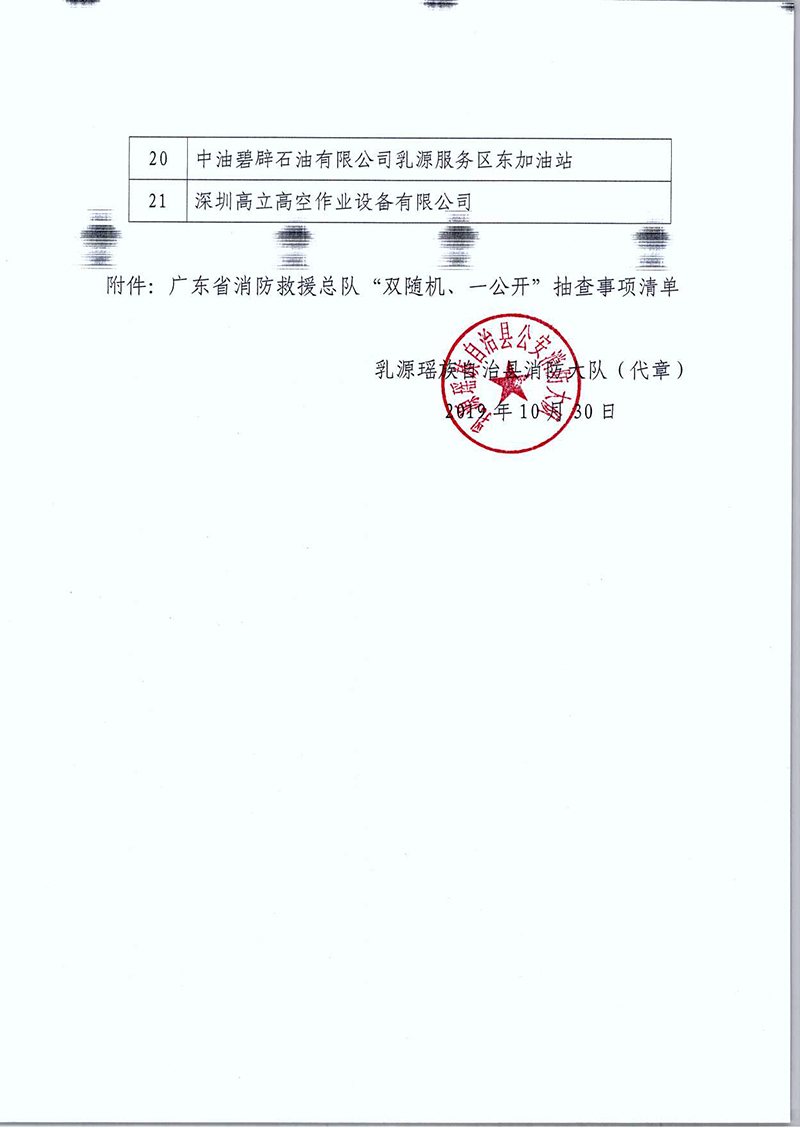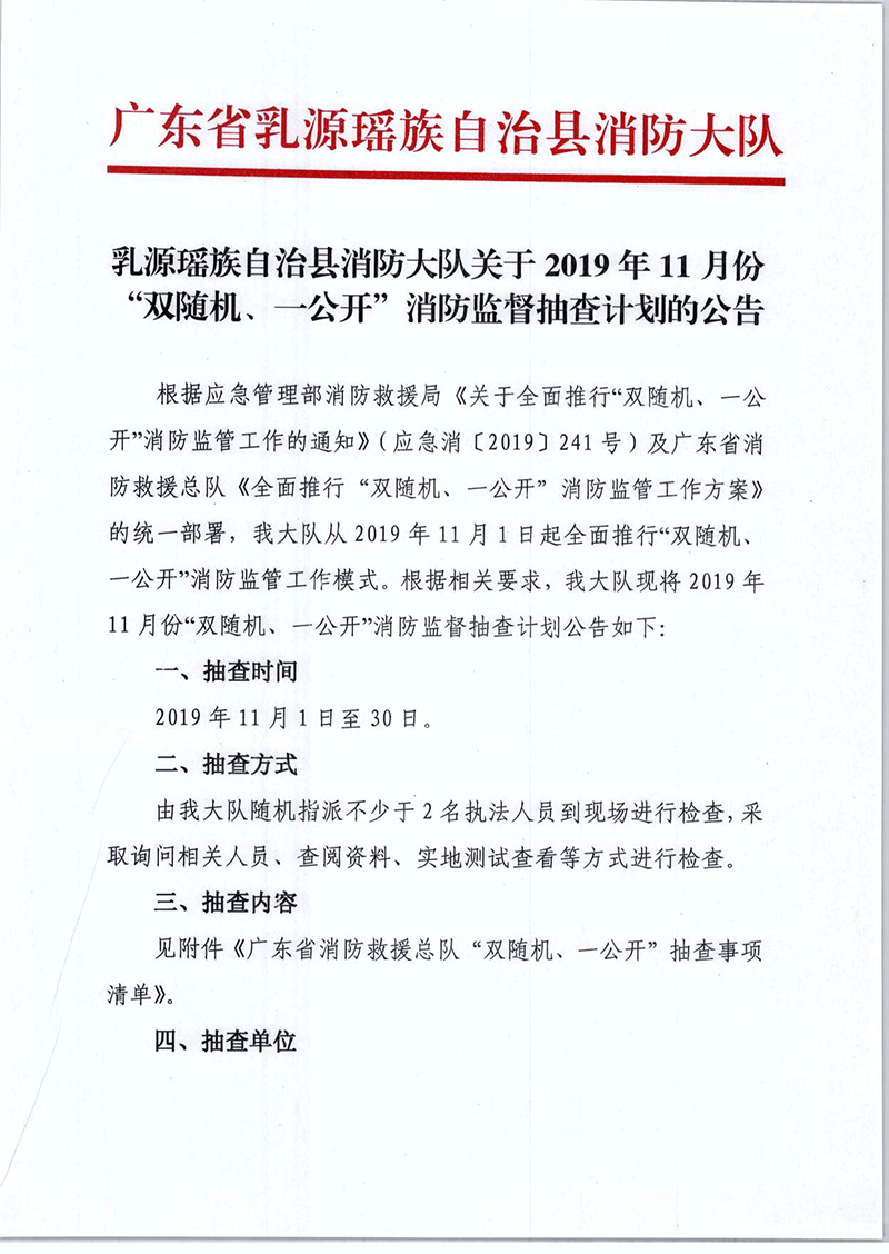 乳源瑶族自治县消防大队关于2019年11月份“双随机、一公开”消防监督抽查计划的公告