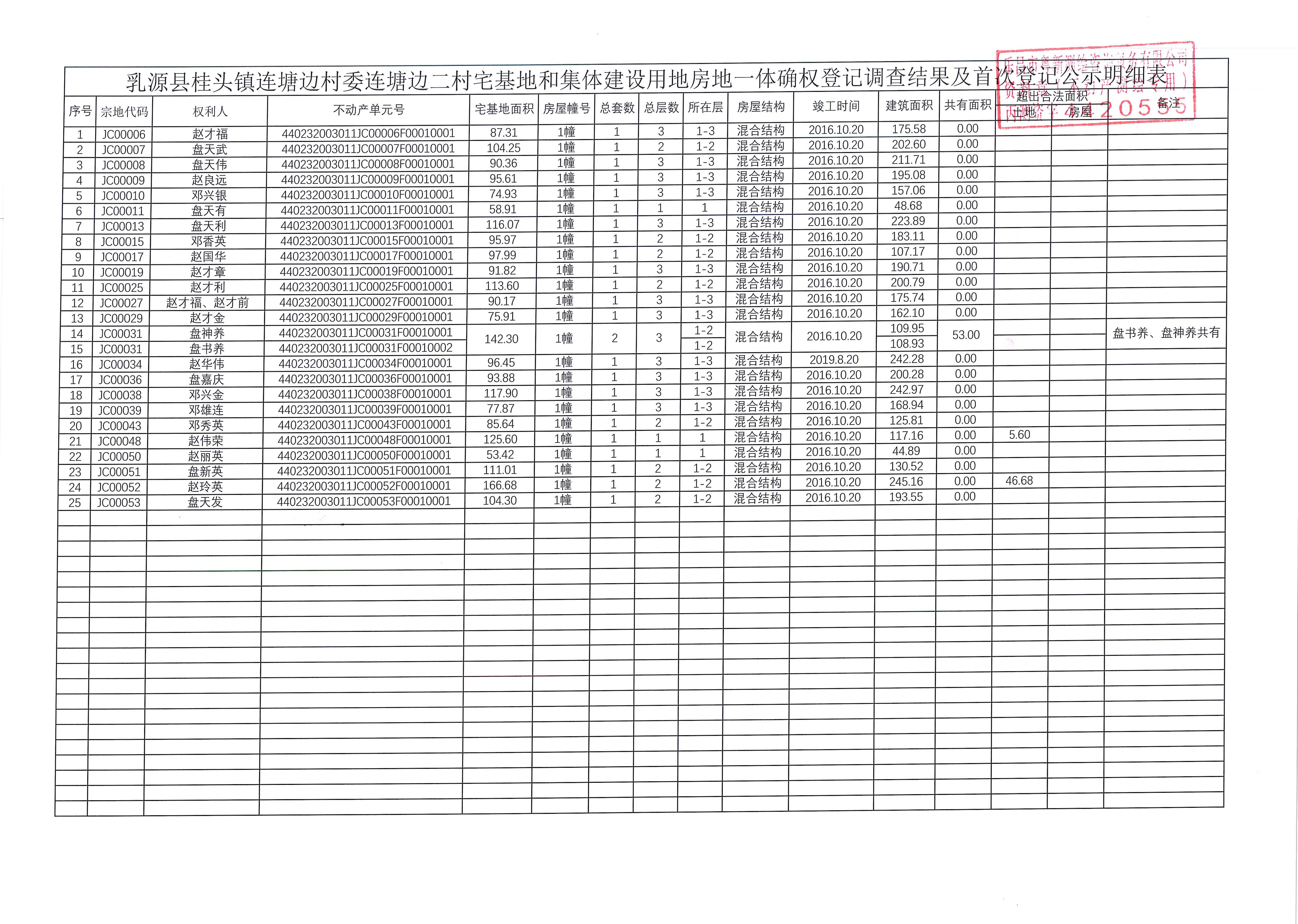 附件1:乳源县桂头镇连塘边村委会连塘边二村房地一体调查公示表 .jpg