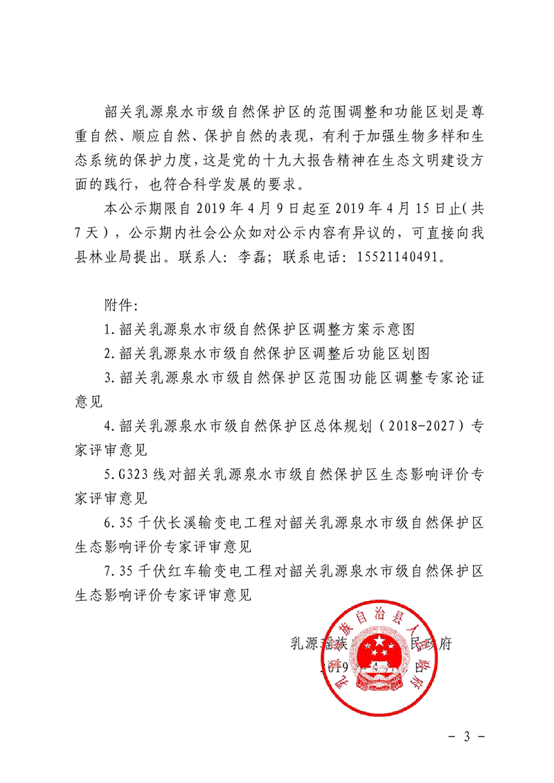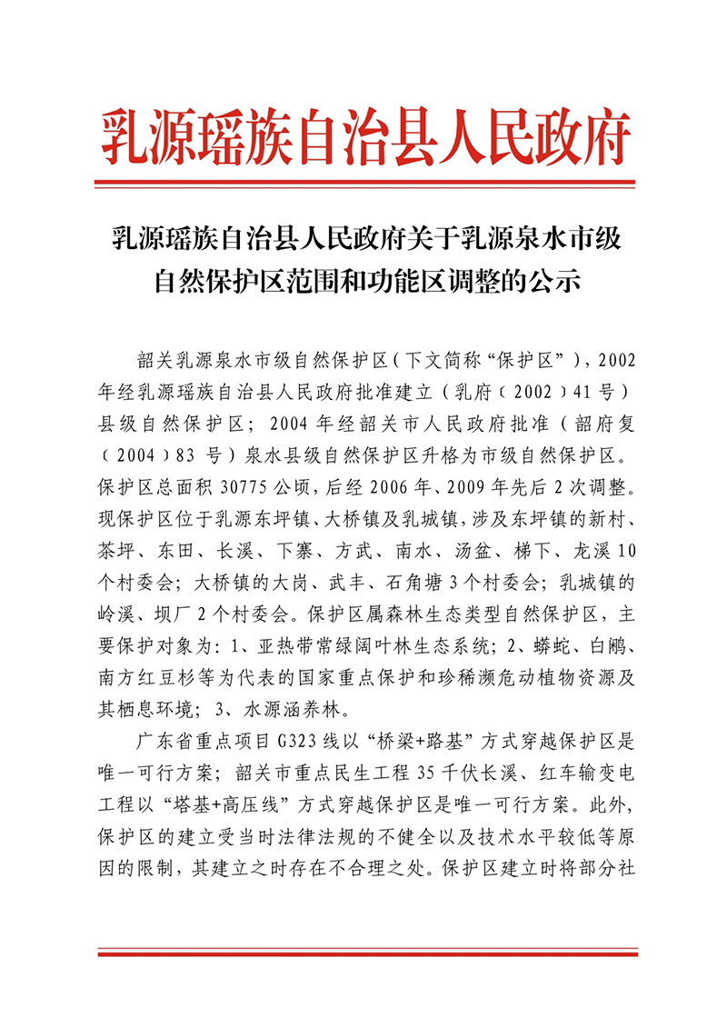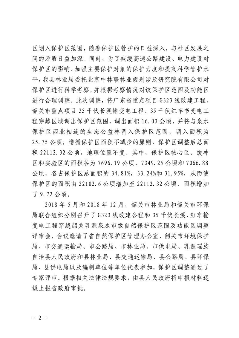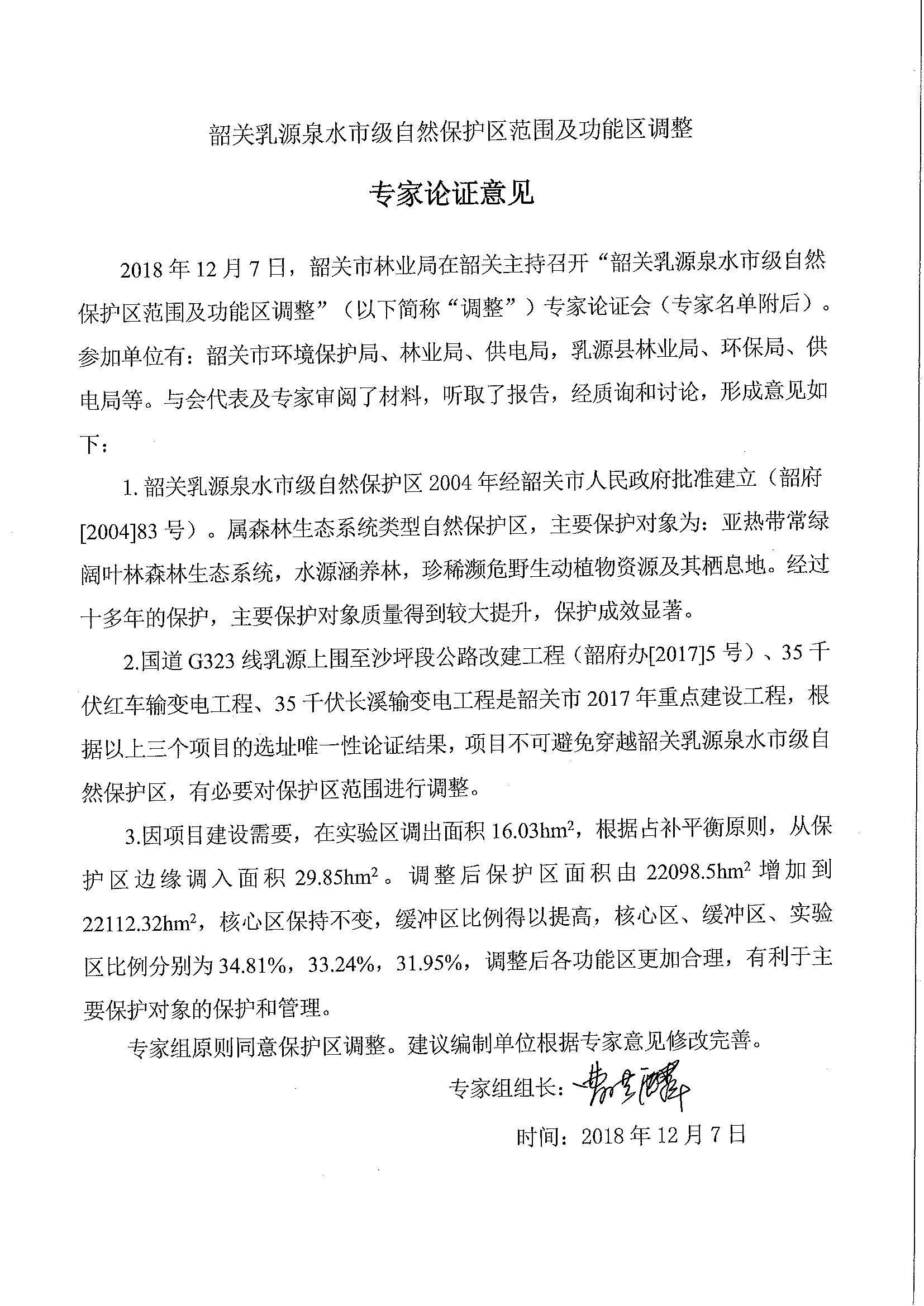 3.韶关乳源泉水市级自然保护区范围功能区调整专家论证意见