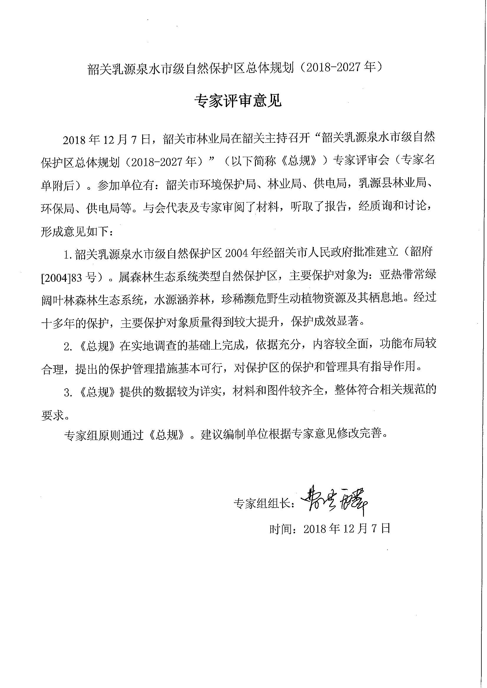 4.韶关乳源泉水市级自然保护区总体规划(2018-2027)专家评审意见