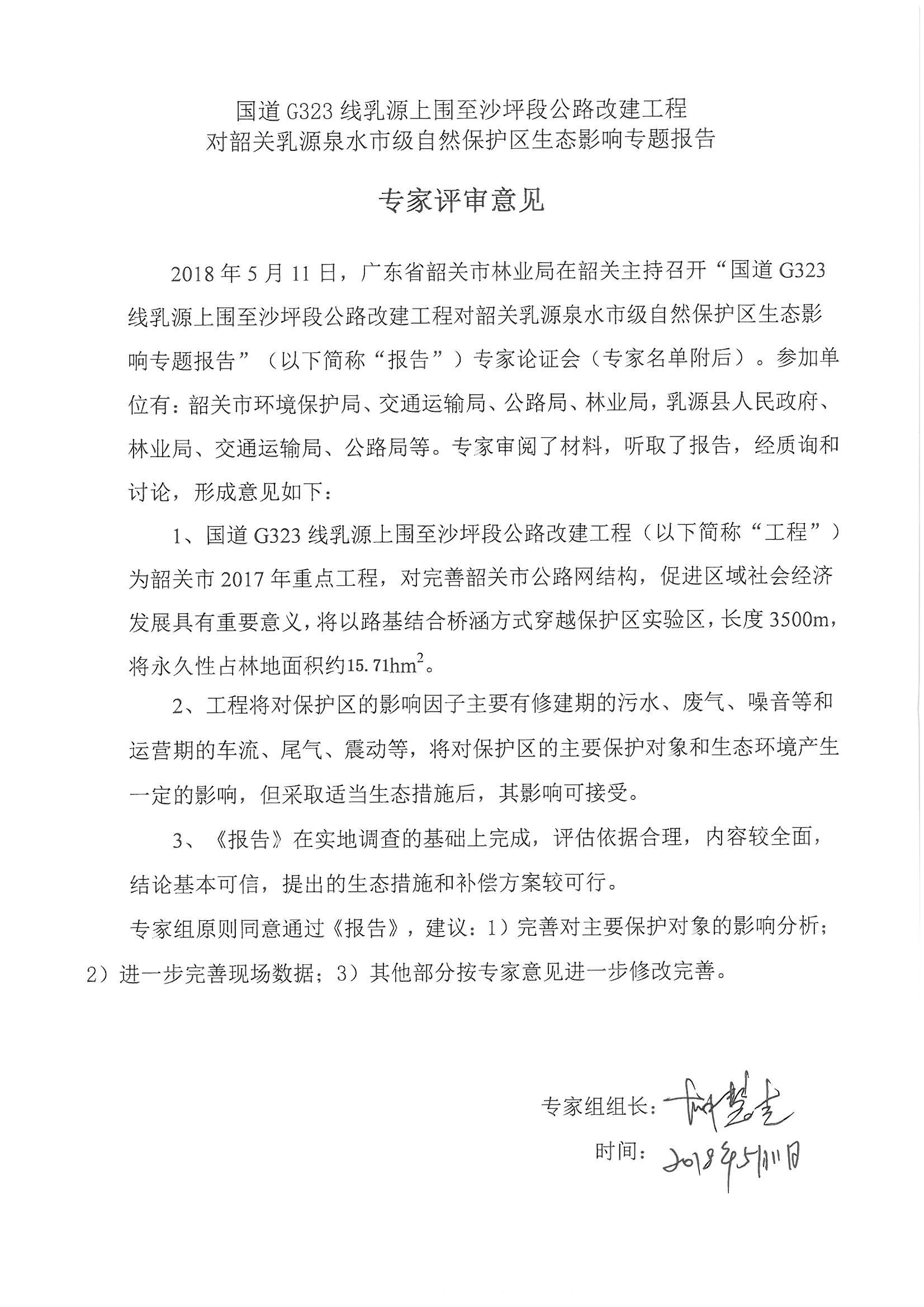 5.G323线对韶关乳源泉水市级自然保护区生态影响评价专家评审意见