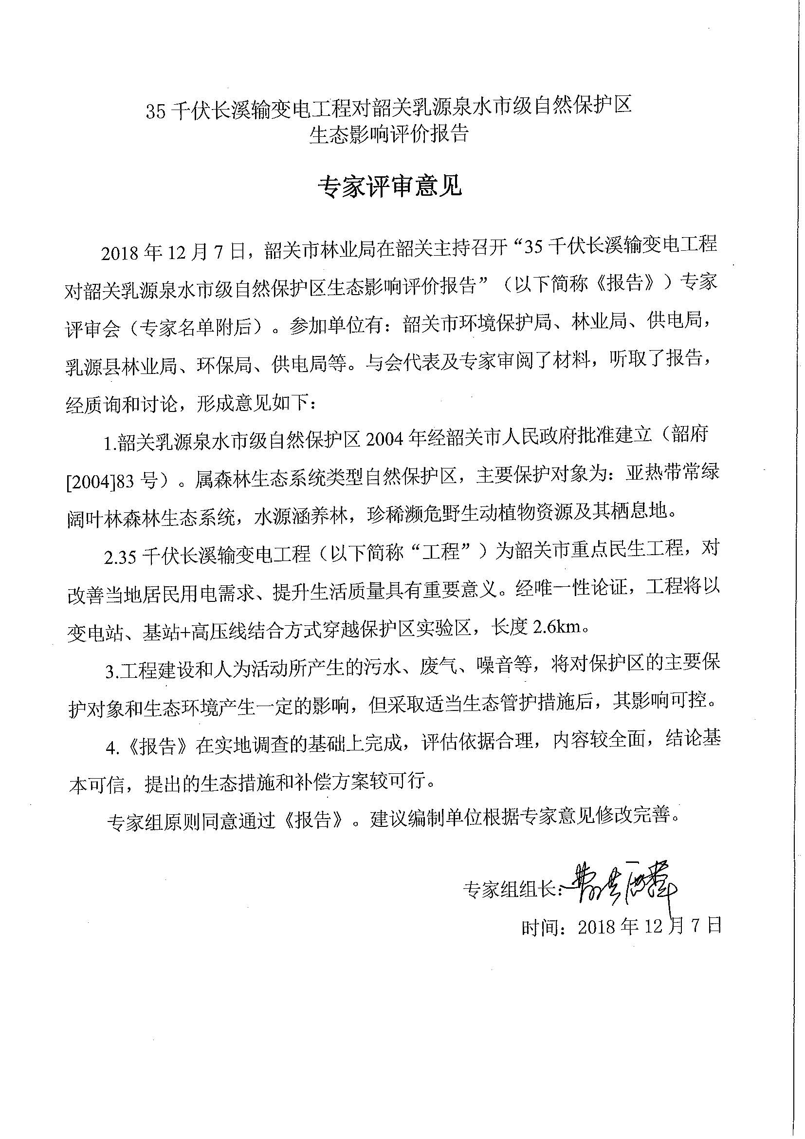 6.35千伏长溪输变电工程对韶关乳源泉水市级自然保护区生态影响评价专家评审意见