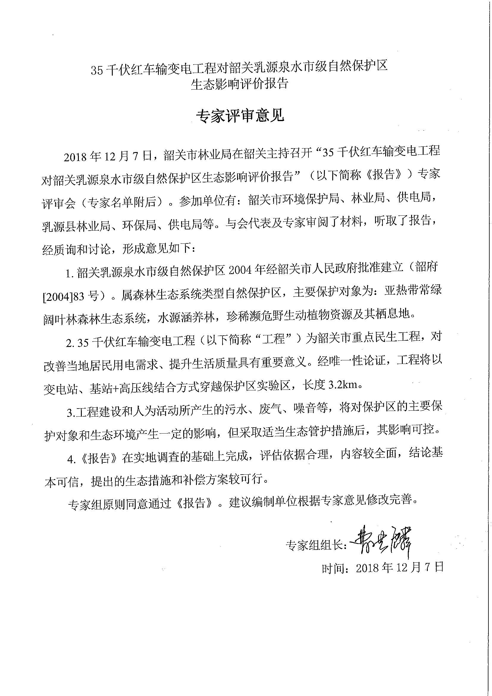 7.35千伏红车输变电工程对韶关乳源泉水市级自然保护区生态影响评价专家评审意见