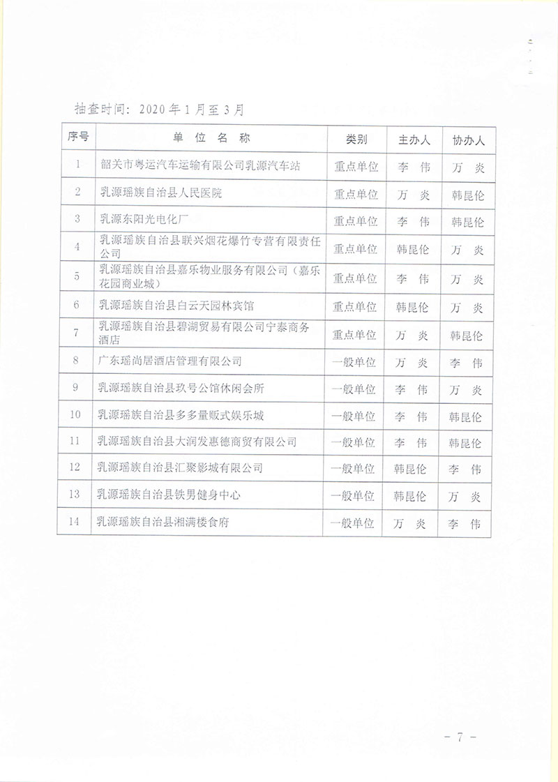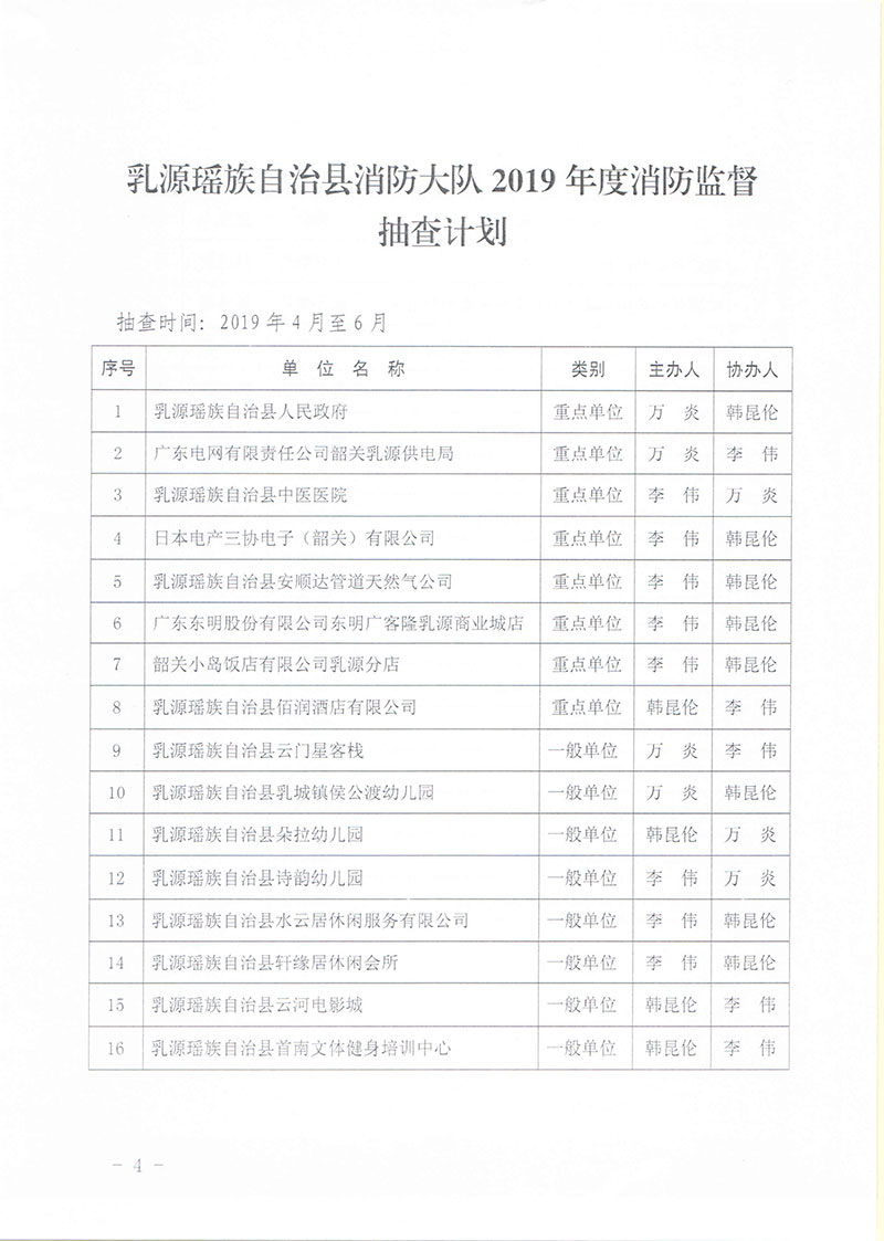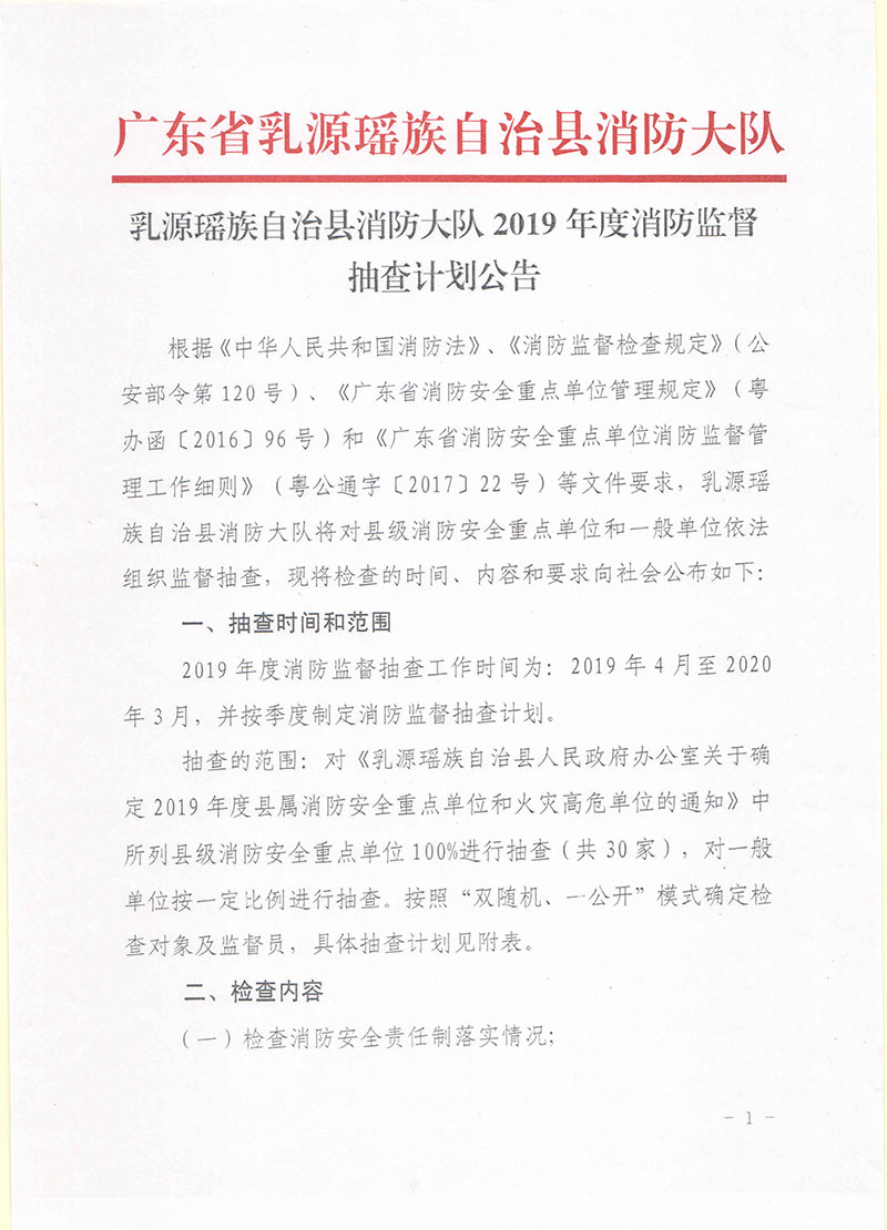 乳源瑶族自治县消防大队2019年度消防监督抽查计划公告