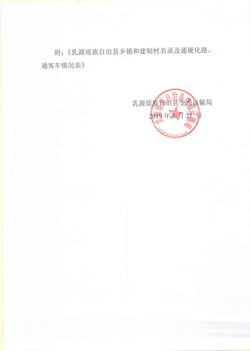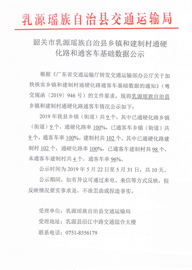 韶关市乳源瑶族自治县乡镇和建制村通硬化路和通客车基础数据公示