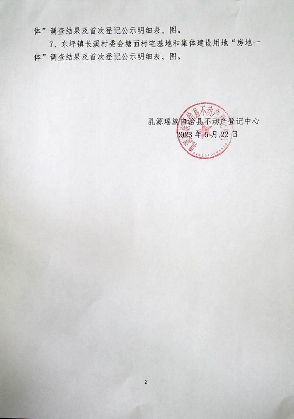 2、东坪镇长溪村委会黄家村宅基地和集体建设用地“房地一体”调查结果及首次登记公示明细表、图。.pdf