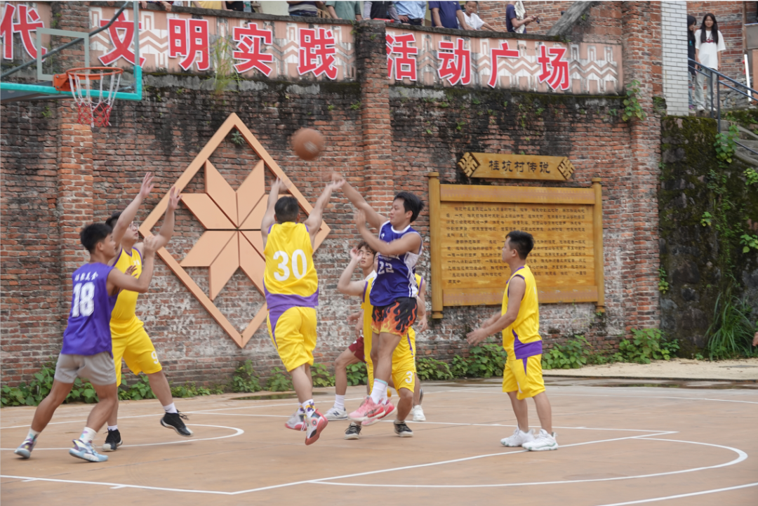 为深入推进“百千万工程”,激发基层群众参与全民健身的热情,助力必背文旅产业振兴发展,8月5日,必背镇在桂坑村举办了以“瑶人瑶文”为主题的系列活动,通过“村BA”篮球比赛、唱瑶歌、跳瑶舞、长桌宴等文体活动,向现场观众展示必背瑶族同胞们力争上游、团结奋进的精神状态和传递绚丽多彩的瑶族文化。 当日,桂坑村篮球场一片热闹喜人的景象。穿着瑶族服装的瑶族同胞们打起瑶鼓、唱起瑶歌、吹响唢呐、欢跳瑶舞喜迎八方来客,使游客们一进村就能感受到强烈的瑶乡热情。篮球场上,必背镇桂坑村、方洞村双方球员奋力拼抢,你争我夺,攻防兼备,尽情挥洒青春的汗水,展现着饱满的精气神,点燃了夏日激情,让村民和游客纷纷“路转粉”。赛场外,观赛群众人山人海,助威呐喊声此起彼伏。