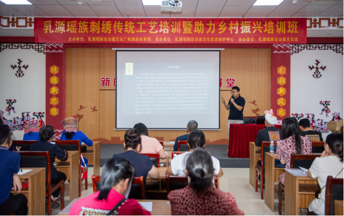 近日,为深入贯彻落实习近平总书记关于乡村振兴和文化遗产保护的重要指示精神,由乳源瑶族自治县文化广电旅游体育局主办,乳源瑶族自治县文化生态保护中心、乳源瑶族刺绣工作站承办,乳源瑶族自治县文化馆协办的乳源瑶族刺绣传统工艺培训暨助力乡村振兴培训班成功举办。本次培训吸引了全县40余名非遗传承人、文创设计从业者和瑶绣爱好者积极参与。