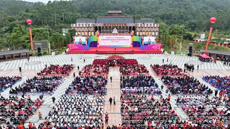11月14日,乳源瑶族自治县成立60周年庆典大会在世界过山瑶风情园隆重举行。全县各族各界群众代表怀着对中国共产党的感恩之情,欢聚一堂,共同庆贺自治县成立60周年。