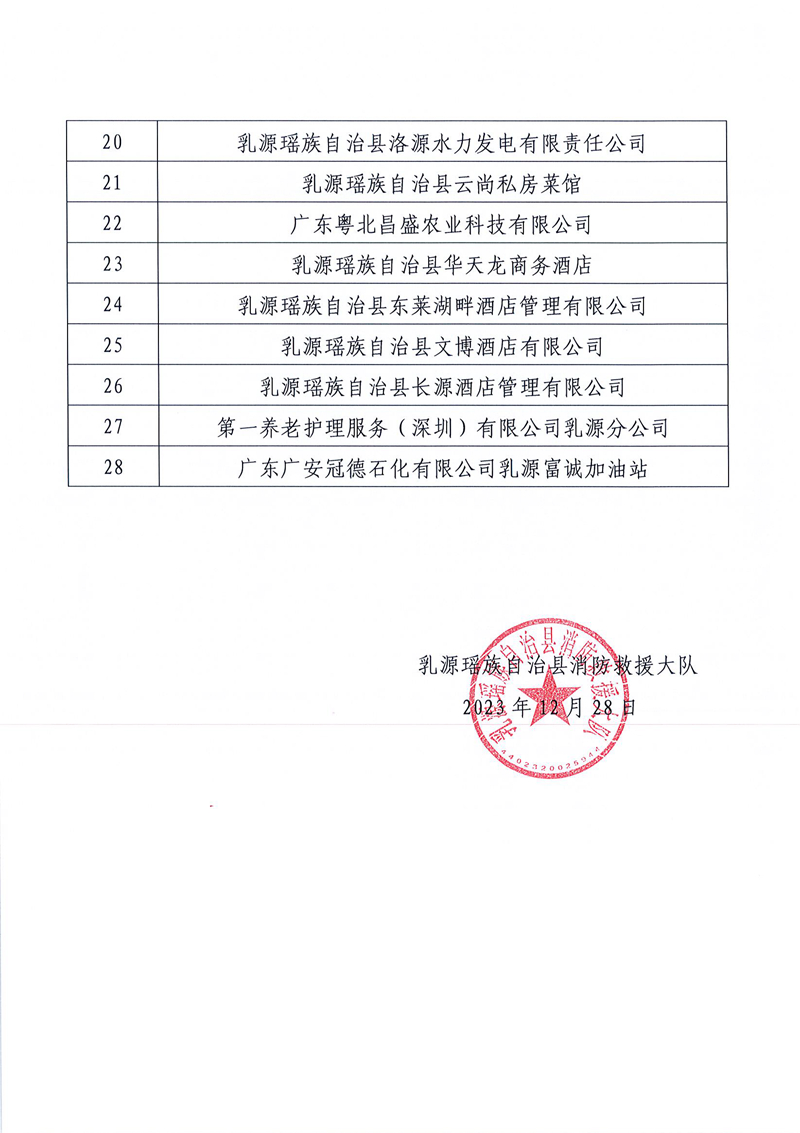 乳源瑶族自治县消防救援大队关于2024年1月份“双随机、一公开”消防监督抽查计划的公告